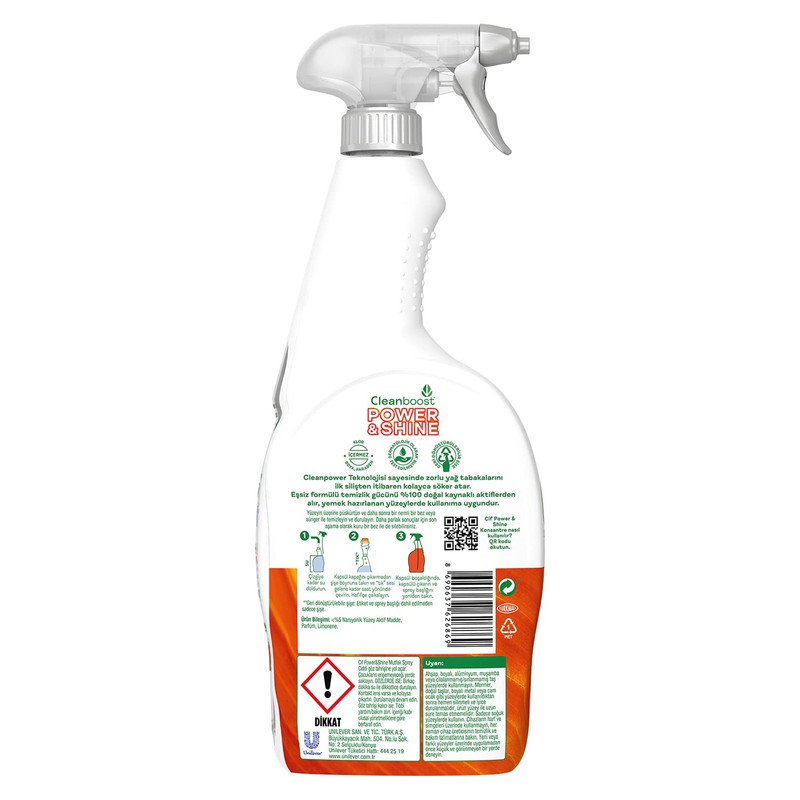 Cif Power Shine Cleanboost Sprey Temizleyici Mutfak İçin Temizleyici ve Yağ Çözücü 750 ML