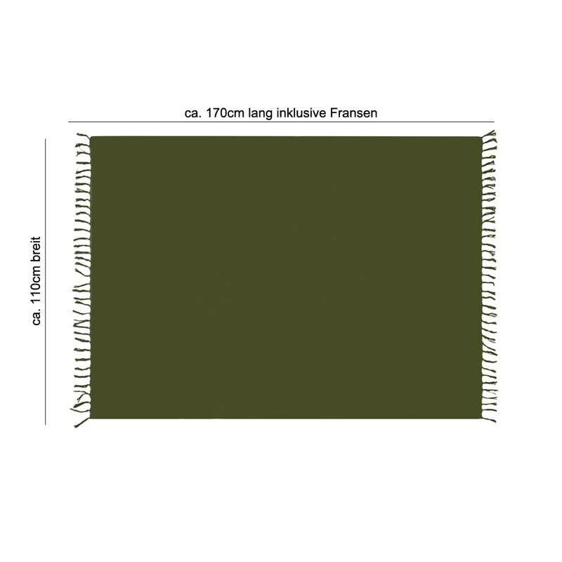 - Subtle plain design: The scarf is plain dyed in an intense tone, has a square shape and is decorated with playful fringes on two sides.