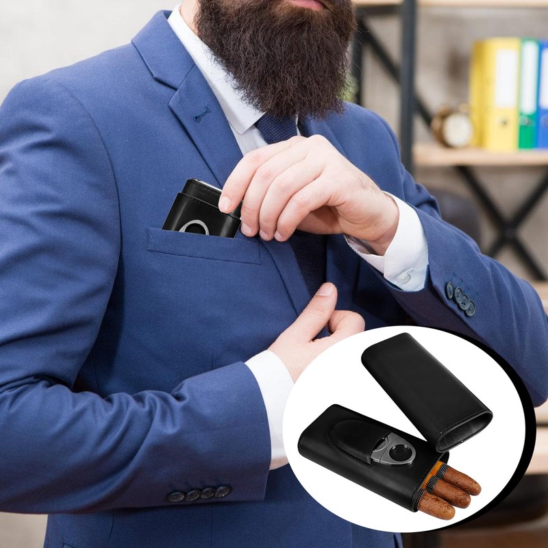 - The included stainless steel cigar cutter guarantees a clean cut, so you can enjoy your cigars at any time. The leather cigar case offers space for three cigars and is therefore a stylish and practical solution for cigar lovers.