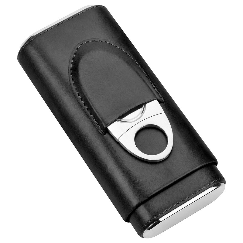 Cigar Humidor Accessories - Cigar Case Travel - Cigar Box with Cutter Gift for Men Black
