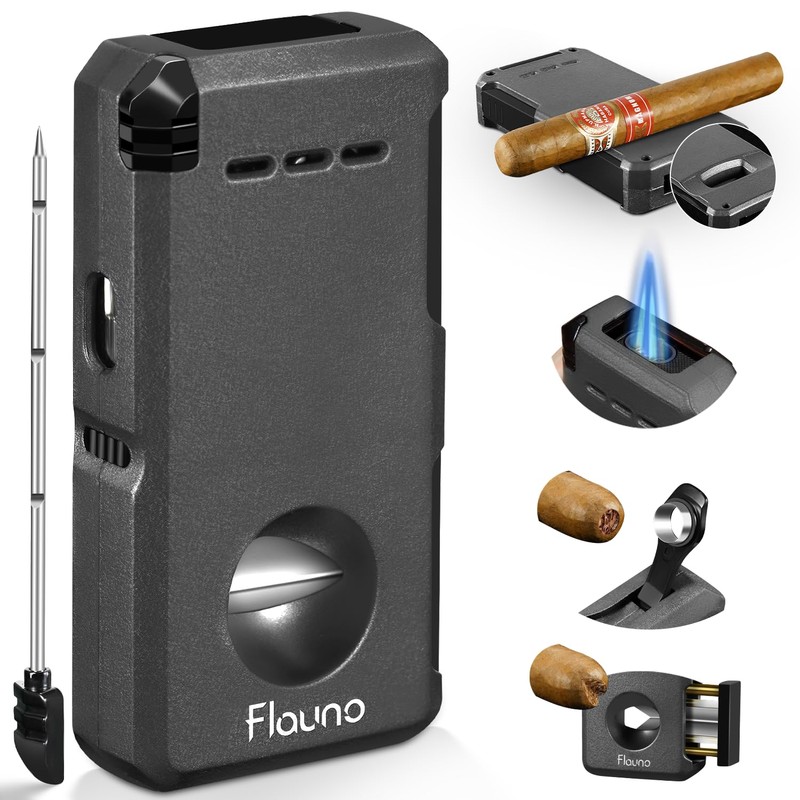 - Achieving the Perfect Draw - Whether you prefer a cigar cutter or a cigar punch to control the amount of airflow, our cigar lighter can do it for you. The V-cut cigar cutter features a sharp, stainless-steel blade and a spring-loaded release, allowing for a clean and smooth cut. If you prefer a more intense flavor from your cigars, use the sharp cigar punch to make small, precise openings. The two tools help you release the flavor of cigar and enhance your smoking experience