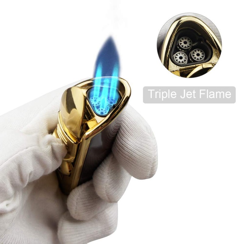 - TORCH CIGAR LIGHTER: Adjustable triple jet flames for an even burn with safety cover cap that automatically opens when lighting.