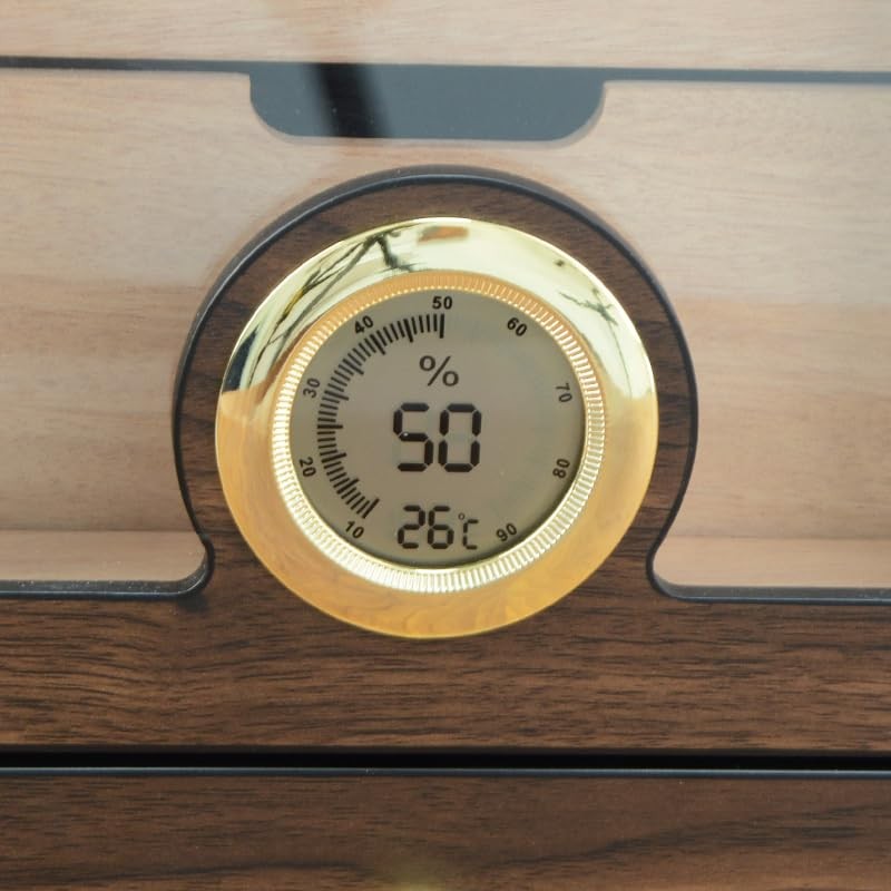 • Spanish Cedar Inside – Smart, Scented Humidity: Known for its rich aroma and moisture magic, Spanish cedar holds more humidity than regular wood and keeps your cigars aging gracefully at 65–70% RH with a touch of natural fragrance.