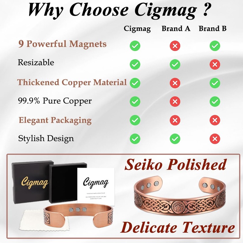 - ULTRA STRONG MAGNETIC Compared with other magnetic products on the market, our products contain stronger neodymium magnets. The copper bracelet has 9 strength magnets. Copper magnetic bracelet for men makes your life more wonderful