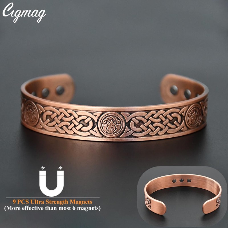 Cigmag Copper Bracelet for Men Ultra Strong Magnetic Bracelets 99.9% Pure Copper Cuff Bangles with Adjustable Size and Gift Box (Copper Celtic Knot 2)