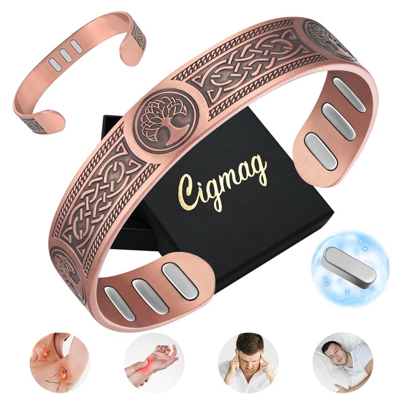 Cigmag Copper Magnetic Bracelet for Men, with Powerful 9X 5000 Gauss Magnets,...