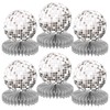 CIGTSICO 6 Pcs Disco Themed Honeycomb Centerpiece, 70s Party Glitter Silver Paper Table Decorations, Glitter Disco Balls for Party and Birthday Table Decorations, Christmas Party Decorations