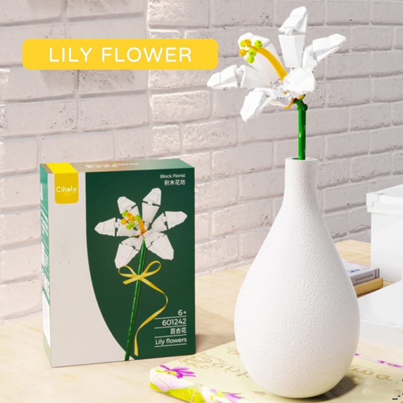 Cihely Flower Bouquet Building Blocks Kits Lily 601242, Artificial Flowers Building Project to Release Stress and Focus The Mind, for Birthday Gifts to Adults/Teens(100+ Pieces)