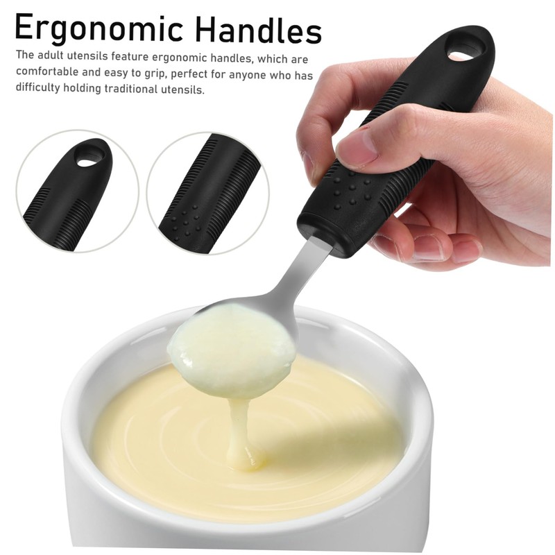 - Ergonomic handles: The adult utensils feature ergonomic handles, which are comfortable and easy to grip, perfect for anyone who has difficulty holding traditional utensils adaptive spoons for disabled adults.
