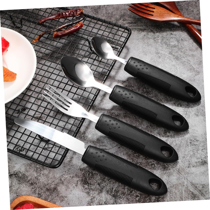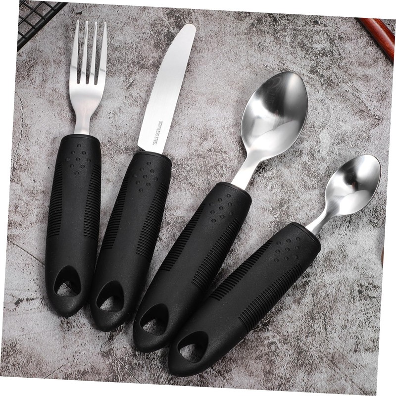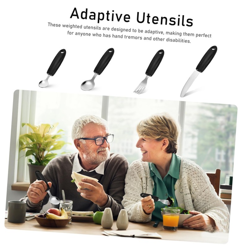utensils for stroke patients Made of food-grade stainless steel, they provide reliability and easy maintenance.adaptive cutlery This set of weighted utensils are specifically designed for elderly and other hand tremors.adaptive silverware The weighted and textured handles of these utensils make it easier to feed themselves without making a mess