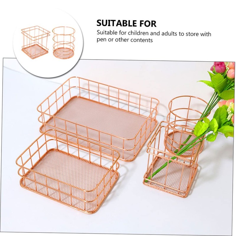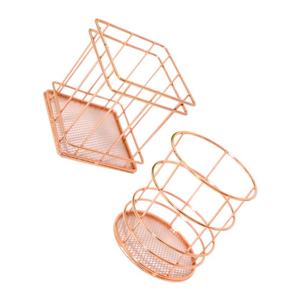 Ciieeo 2PCS Rose Gold Iron Art Storage Basket Nordic Style Wire Baskets for Desk Bedroom Home Organization Stylish Iron Bins for Multi Purpose Use