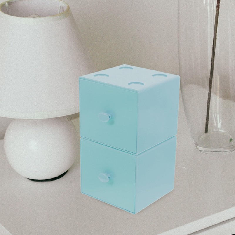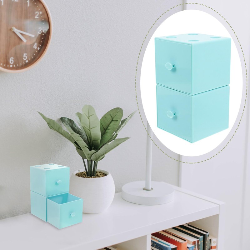 Ciieeo 2pcs Stackable Desktop Organizer Plastic Stackable Drawer Bins Small Desk Organizer Boxes Plastic Chest of Drawer for Home and Office (Blue)