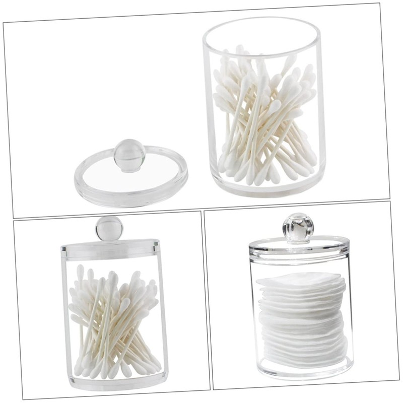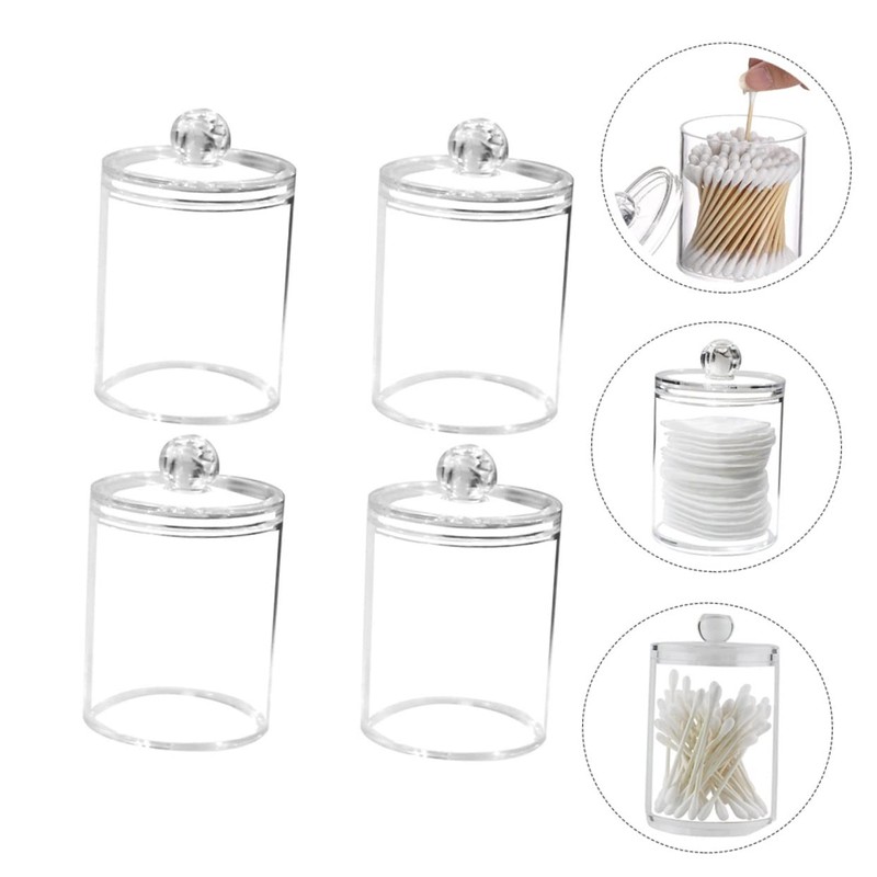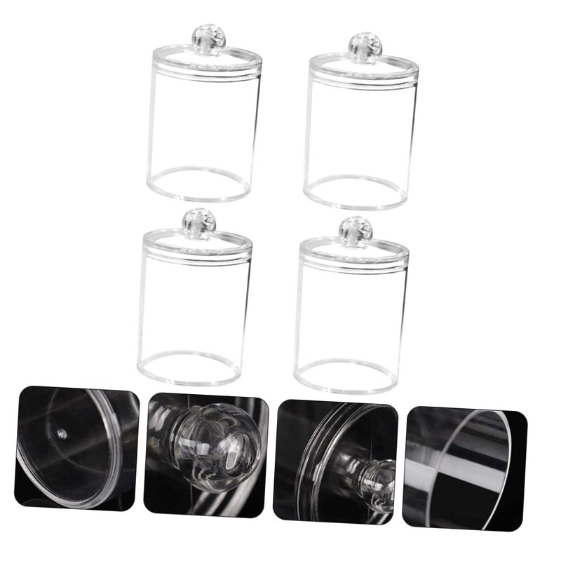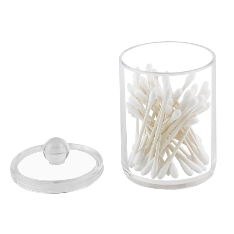 make up sponge holder The acrylic storage boxes are small, but are practical to use.toothpick organizer canister The acrylic storage boxes are designed for small things' storage.container with lid Suitable to store toothpick, cotton sticks, cotton balls, cotton pads and cosmetic.jewelry container They are essential items that can help your desktop to get out of mess