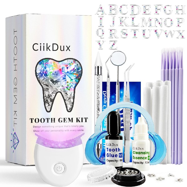 - The tooth gem kit includes a complete A-Z set of jewelry-studded letter gems. Show off your personality with every smile