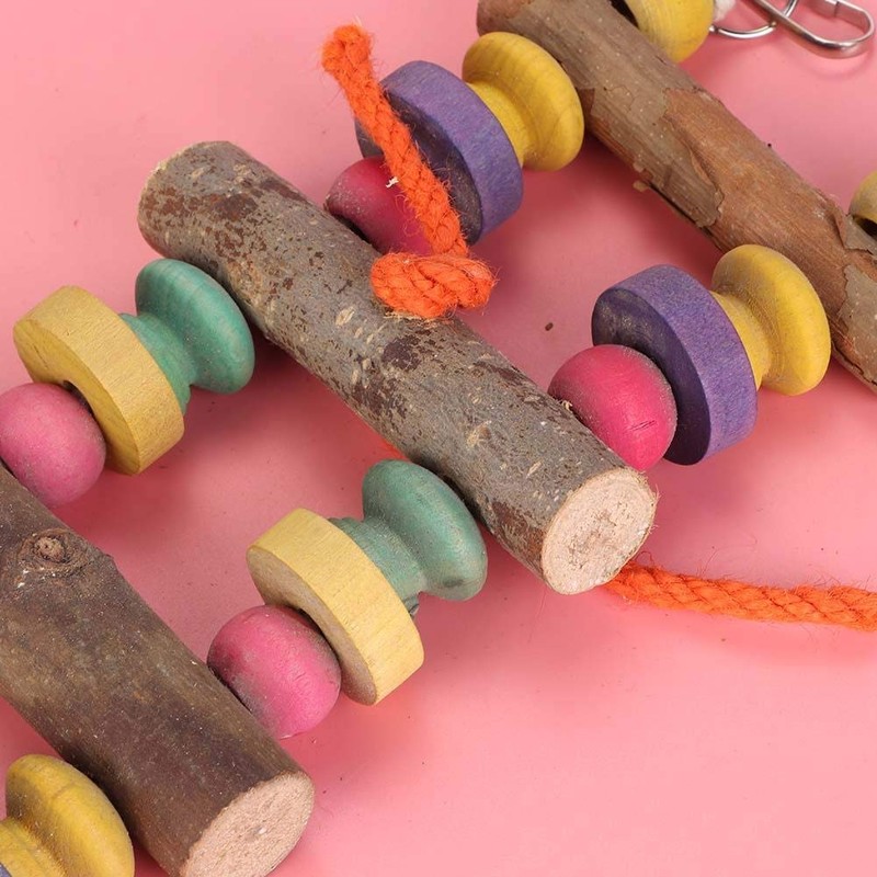 Cikonielf Ladder Bird Toy Wooden Rope Ladder Rainbow Bridge Swings Wooden Ladder Swing Bird Toy Hanging Ladder Chew Toy