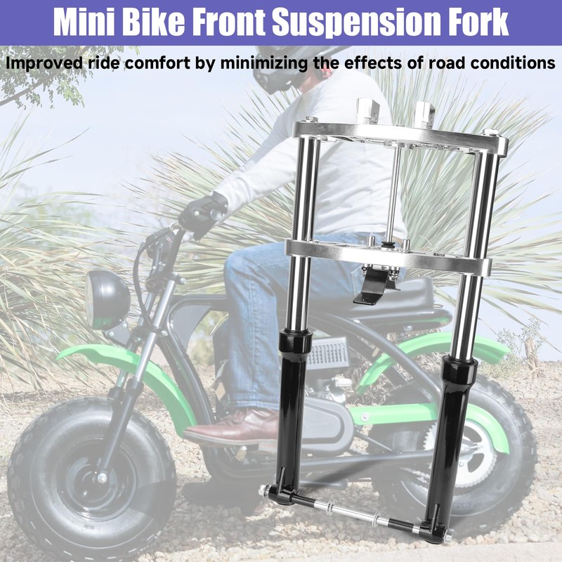 Superior Shock Absorption: The dampening effect of the forks is critical to improving the handling and ride comfort of the mini bike. The suspension forks use spring dampers to effectively slow down the impact from the road surface, ease the impact on the bodywork, reduce the motorcycle's shaking and swaying, enable the rider to better control the vehicle, improve stability and ensure riding safety