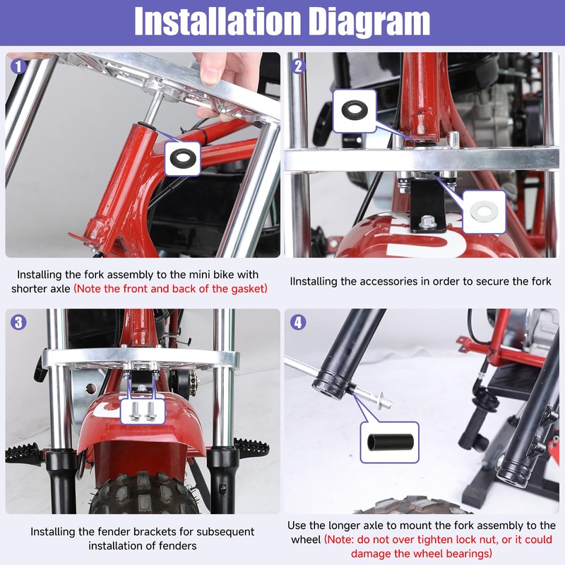 - Easy Installation: The mini bike front forks kit is assembled, making the installation work is more easy and save your time