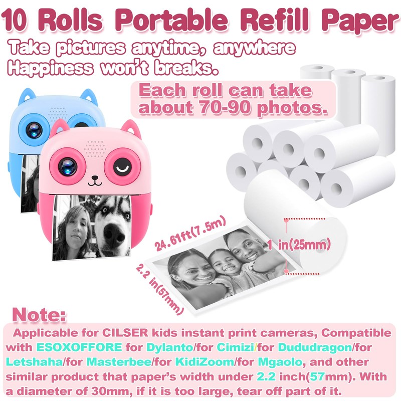 - Easy to Use: Our kids instant camera refill print paper is compatible with various styles of kids' instant cameras and mini printer. It is incredibly easy to install, requiring children to simply follow the correct direction when inserting the thermal paper and ensuring it remains within the camera cover