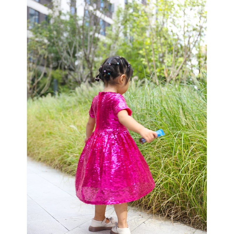 - NO SCRATCHY TO BABY GIRLS SKIN: Lining of hot pink sequin dress for girls is soft cotton. COMFORTABLE all day! Sequins of baby dress are on BOTH sides over the top shiny and extra sparkly. Ready to wear to any Posh occasion. Adorned with free hot pink headbands