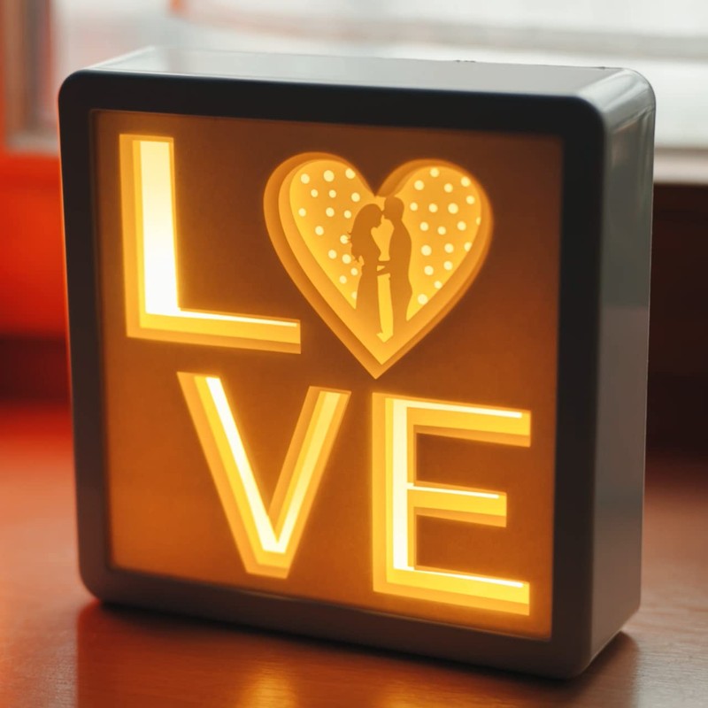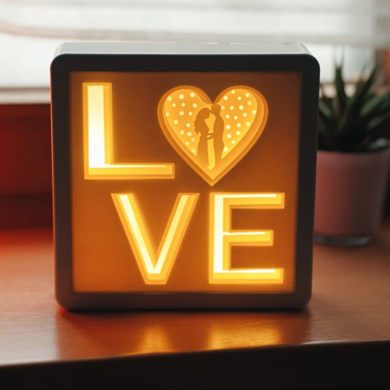 CIM 3D Papercut Lightbox - Square Love - Dimensions: 16 x 5 x 16 cm - Love Shadowbox Home Accessory - Paper Carving Lamp - Creative Night Light - Unique Decoration for Window Sills and Shelves
