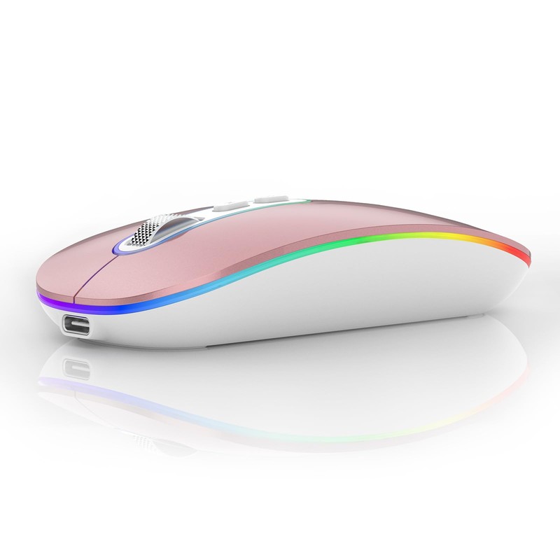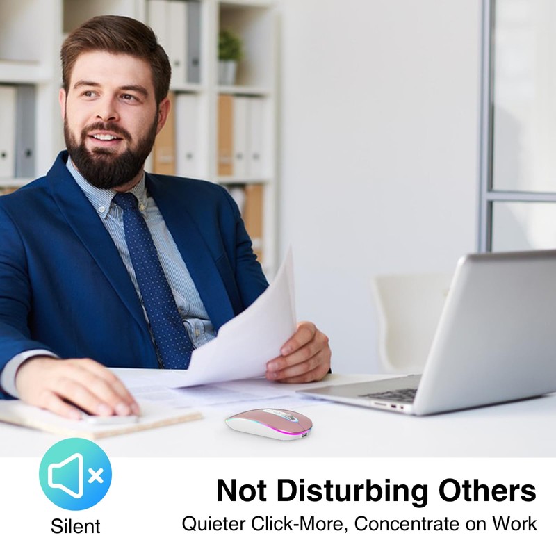 cimetech Led Wireless Mouse for Laptop, Rechargeable Bluetooth Mouse, Ambidextrous Portable Travel Computer Mouse for Student Business Office Library Home(Rosegold)