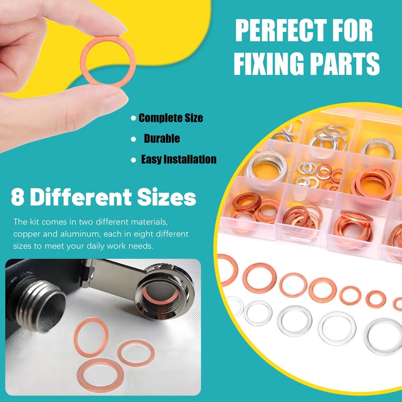 - đ ăGood SealingăAluminum and red copper gaskets help prevent oil, water, and gas from leaking through bolt holes, providing long-lasting sealing capabilities. They can also be used for hydraulic and pneumatic connections under extreme pressure, bringing convenience to your life.