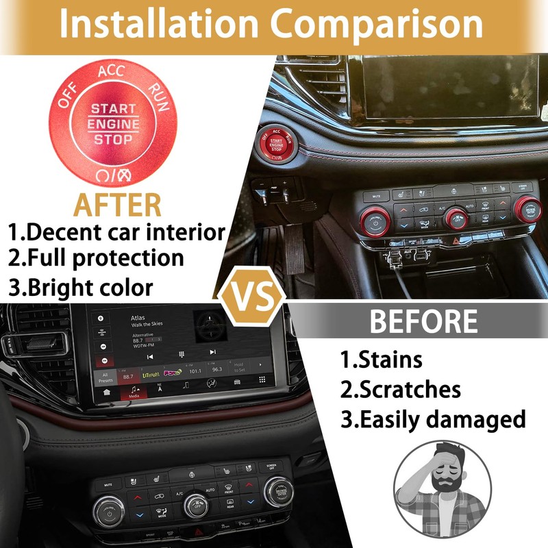 - Function: Our center console knob rings have a shiny metallic luster that enriches the look of your car's interior, providing a unique and eye-catching decorative style. Protect your knobs from scratches and abrasions