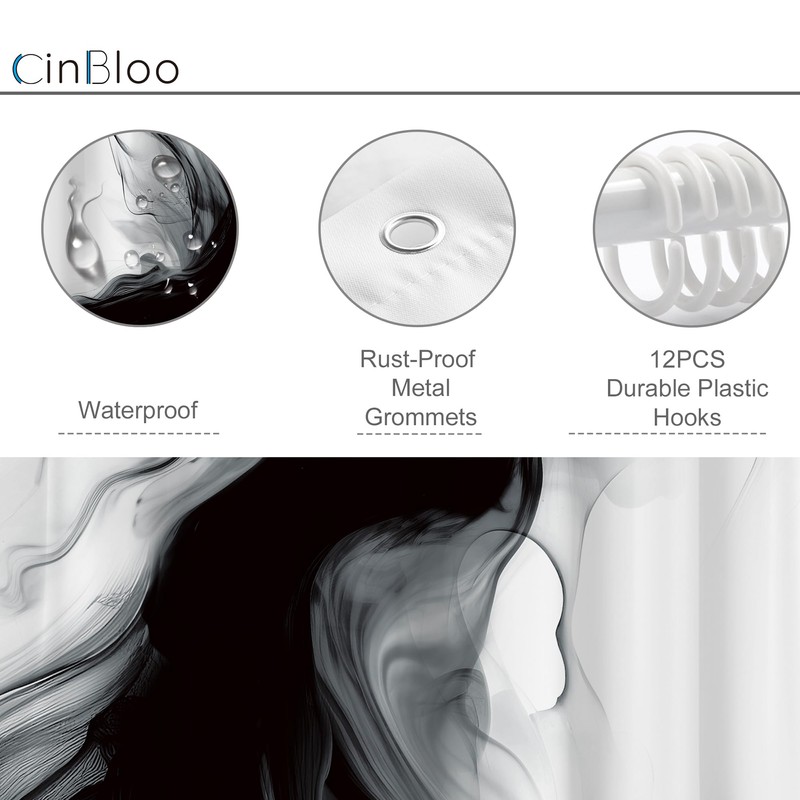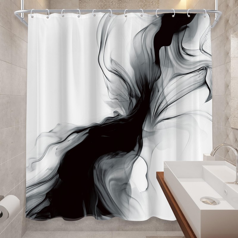 - 【What’s Included】:1 PCS 60"W x72"H fabric black and white abstract shower curtain with 12 plastic hooks.