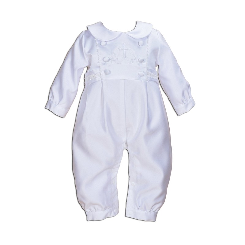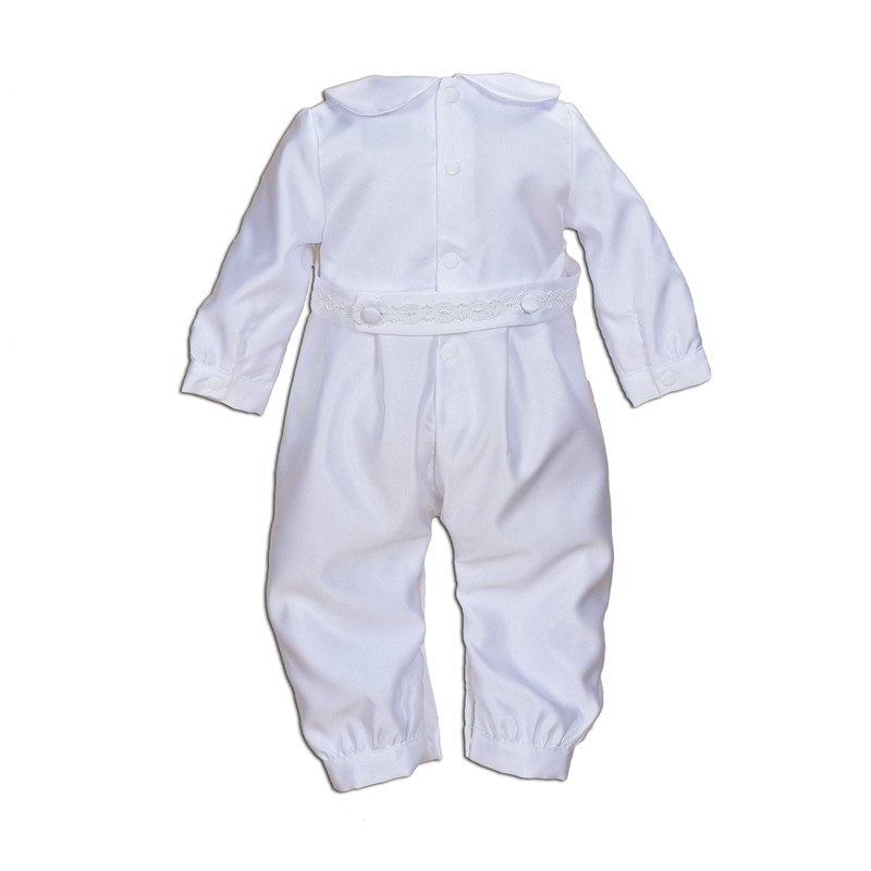 Cinda 3 Piece Boys Satin Christening Romper Hat Bib and Shoes, White, 3-6 Months