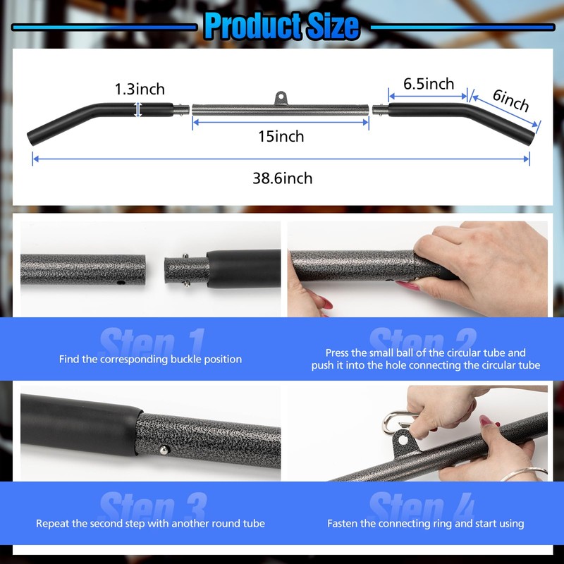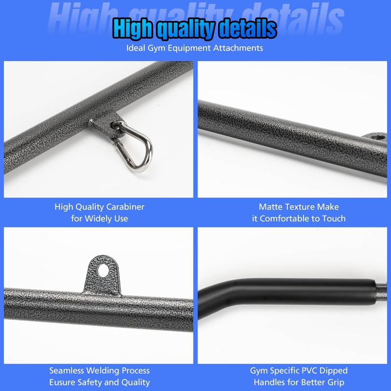 - 【NON-SLIP HANDLES】The two ends of the cable machine attachment bar are covered with two rubber handles providing stability when you are gripping. The handles are slip-resistant and skin-safe and can let you control your lifts for better consistency.