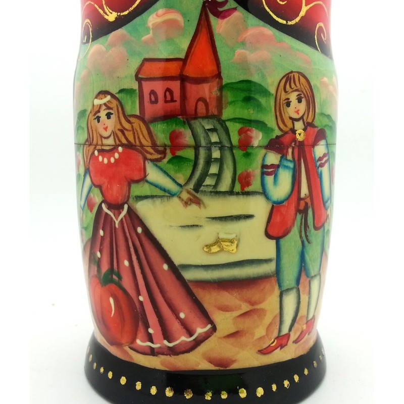 Cinderella Fairy Tale Nesting Dolls Russian Hand Carved Hand Painted 5 Piece Doll Set