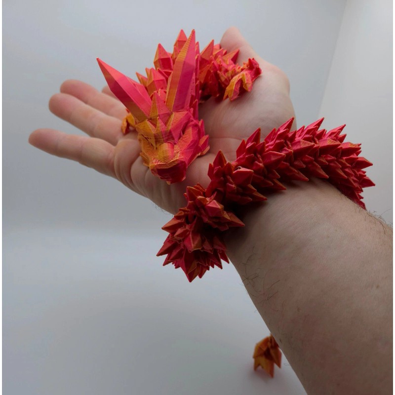 Cinderwing 24" Red & Gold Crystal Articulated Dragon 3D Printed Sensory, Flexi Fidget Toy