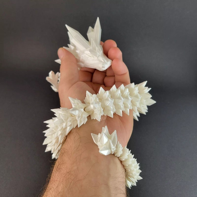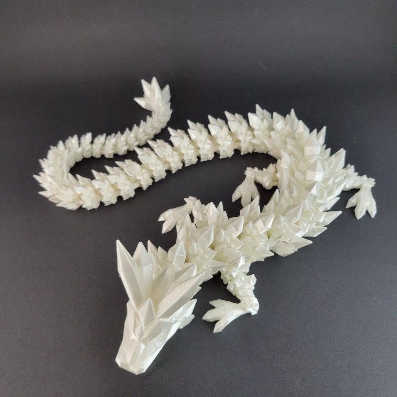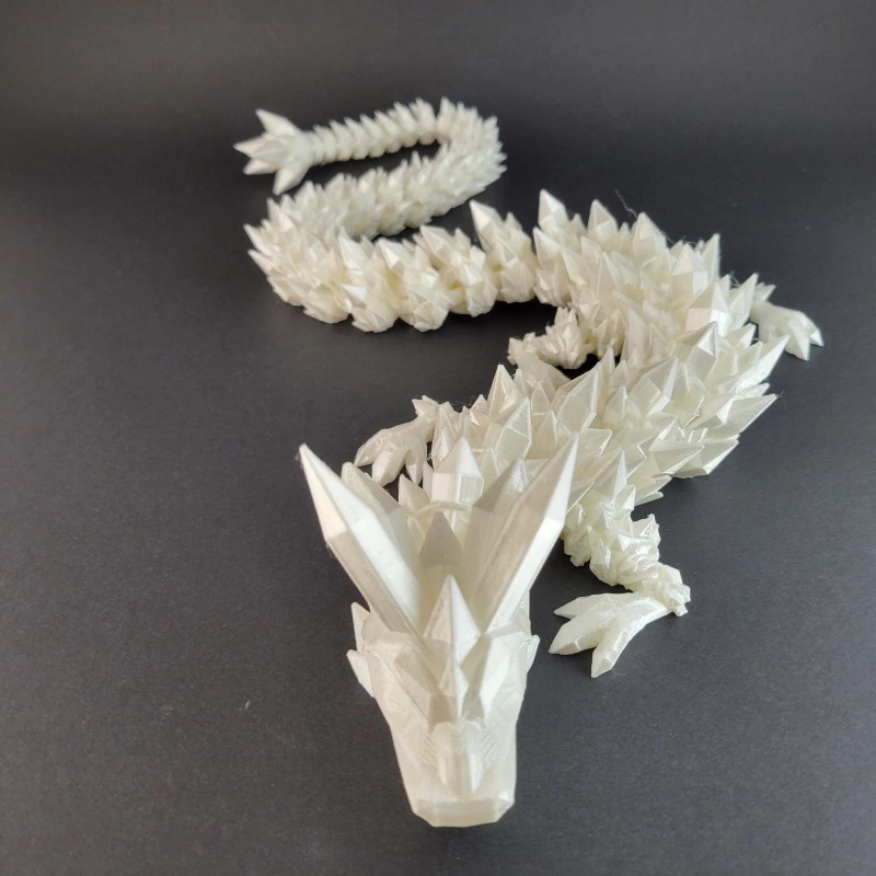 This exquisite 3D-printed white dragon is meticulous crafted with intricate details, making it a stunning addition to any home or officer decor. Made from high-quality bio-degradable PLA plastic, this dragon is durable and lightweight, ensuring that it will last for years to come. Its articulated design allows it to be positioned in various poses, making it a fun and interactive desk toy. This dragon is an ideal gift for anyone who loves fantasy, mythology, or dragons. It's a unique and thoughtful present that will bring joy and excitement to any recipient. Whether you're looking to add a touch of whimsy to your office desk, living room, or bedroom, this dragon is a perfect choice. The amazing white color add a pop of color to any space, and intricate design makes it a conversation starter