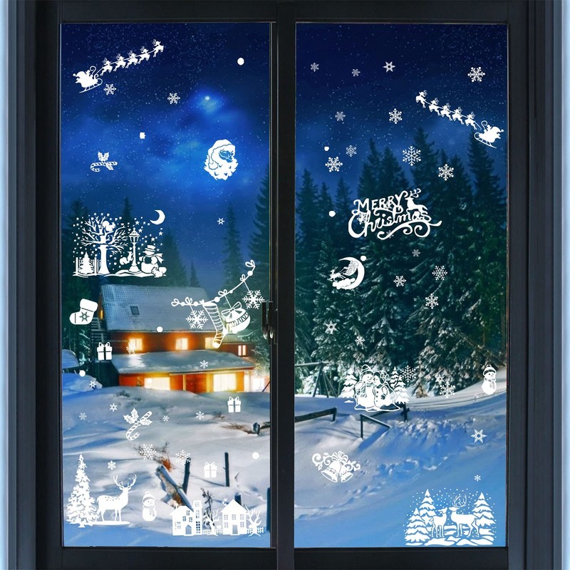 CINECE Christmas Stickers, Decoration, Static Cling Stickers, 142 pcs, Wall Stickers, Glass, Window Decoration, Merry Christmas, Stainless, Removable, Snow (White)