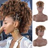 CINHOO Jerry Curls Mohawk High Puff Hair Bun Ponytail Drawstring With Bangs Synthetic Fauxhawks Afro High Puff Kinkys Curly Pony Tail Clip in on Wrap Updo Hair Extensions for Women (T1B/30)