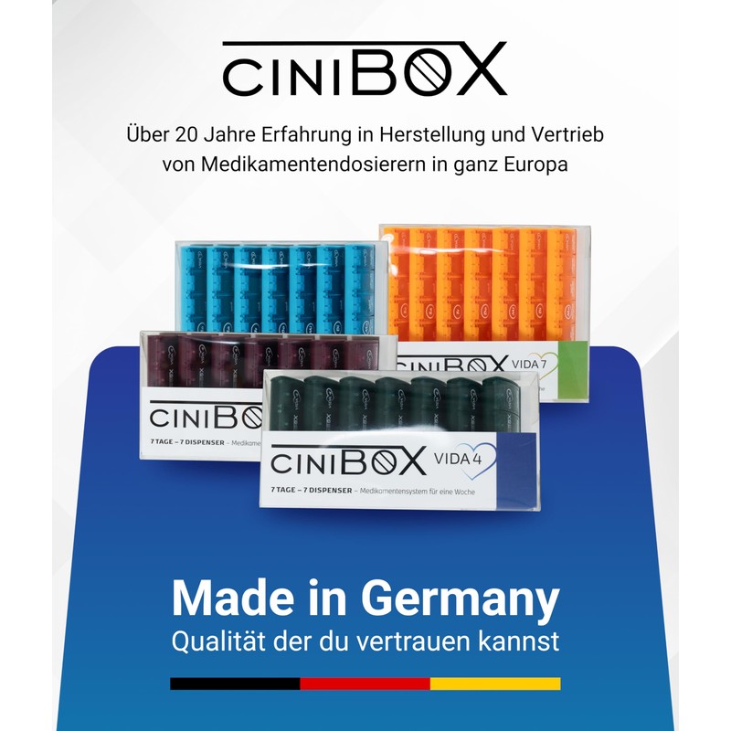 CINIBOX Pill Divider - For Large & Small Tablets - White - Precise & Easy Division of Tablets into 1/2 & 1/4 - BPA Free & Food Safe - Made in Germany