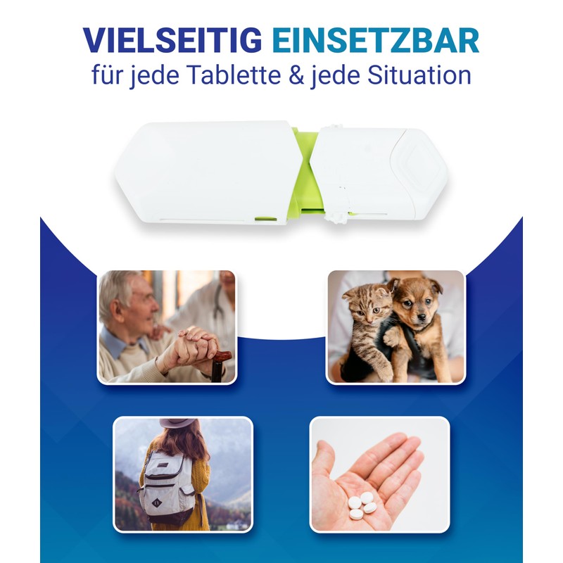 - ✅ PRECISE & EASY SHARING: Cuts tablets effortlessly into 1/2 & 1/4 - perfect for large & small tablets. Facilitates the intake and dosage of your medication.