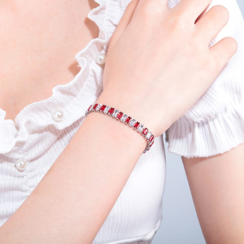 - Material: Carefully selected the top grade brilliant AAA+ 3 mm rectangle zircon, under the heart and arrow cutting effect, every simulated diamond restores item natural beauty and extremely brilliance. Luxury dazzling bracelet highlights the noble atmosphere. Make you to be more charming and eye catching on any occasion