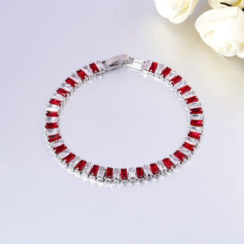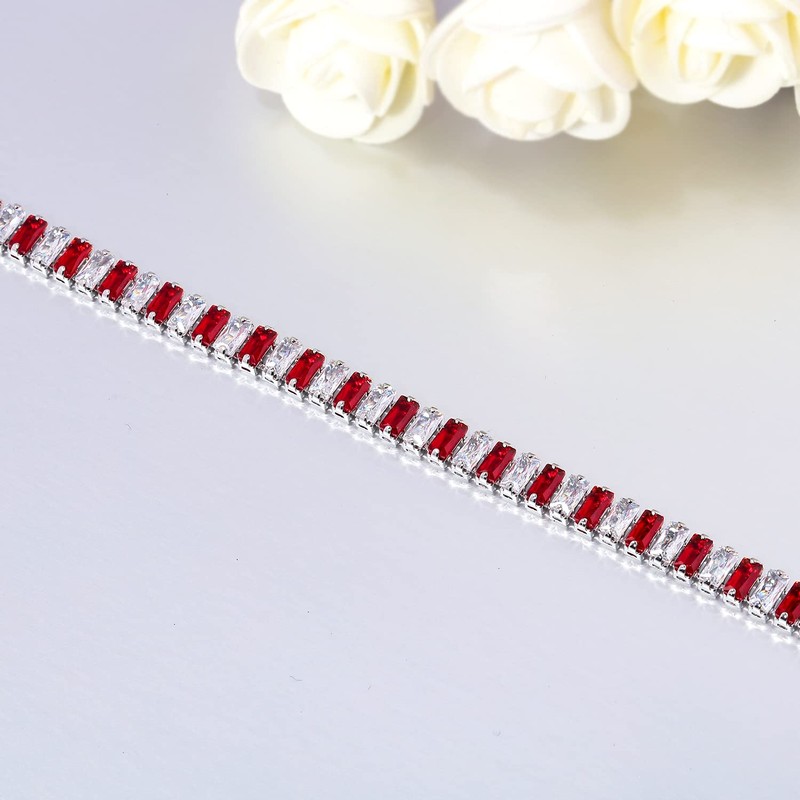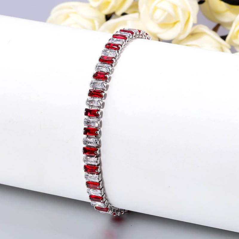 CiNily 14K White Gold Plated Rectangle White Red Cubic Zirconia Classic Tennis Bracelet 7.5 Inch
