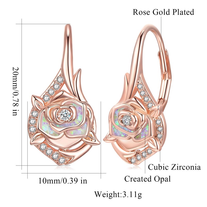- Birthstone Earrings for Women Material: Delicate opal earrings made of 148 rose gold plated and created fire opal and cubic zircon. Not easy to tarnish, rust, or fade, hypoallergenic. Shiny and glossy, durable and lightweight for everyday wear. You will love this fashion style opal jewelry