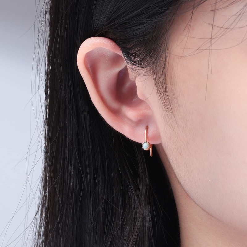 CiNily Women's Dainty Hook Earrings Stainless Steel Hypoallergenic Created White Fire Opal Hoops Earrings Half Cuff Threader Tiny Huggie Earrings Jewelry Gifts(Rose Gold)
