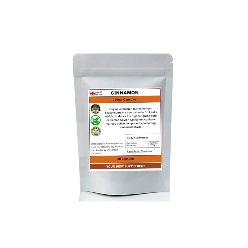 Cinnamon Capsules 750mg 100% Pure (True Ceylon) High Strength (30)