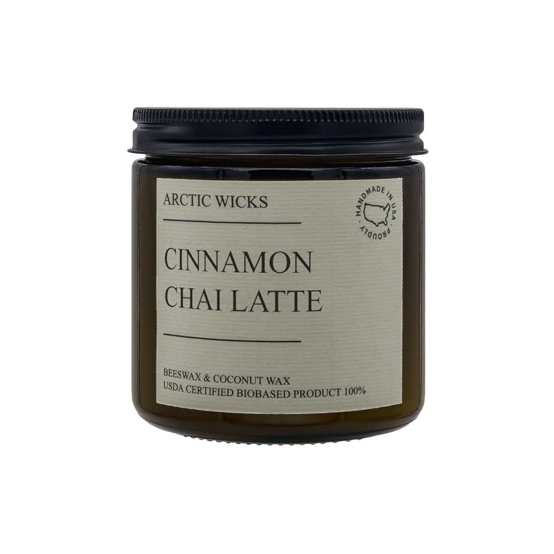 Cinnamon Chai Latte Candles | 16oz Amber Jar | Arctic Wicks Non-Toxic Scented Coconut & Beeswax Candle | Non-Toxic Fall Decor Gifts for Autumn | USDA Certified Biobased