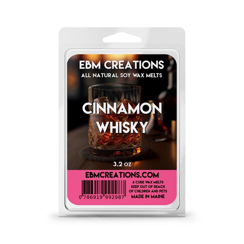 Cinnamon Whisky - Scented All Natural Soy Wax Melts - 6 Cube Clamshell 3.2oz Highly Scented Non Toxic Clean Burning Aromatherapy