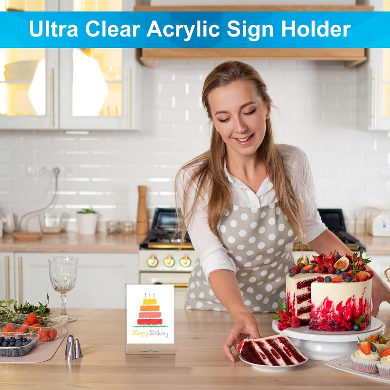 - High Transparency: this acrylic desktop display stand is about 0.12 inches/3 mm thick and has high transparency to ensure that your signs, menus or graphics are clearly displayed; Clearly display your menu or notice, Note: please remove the protective film before use for a clearer display effect