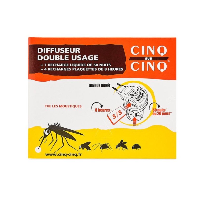 Cinq sur cinq 5/5 Diffuseur électrique double usage contre les insectes
