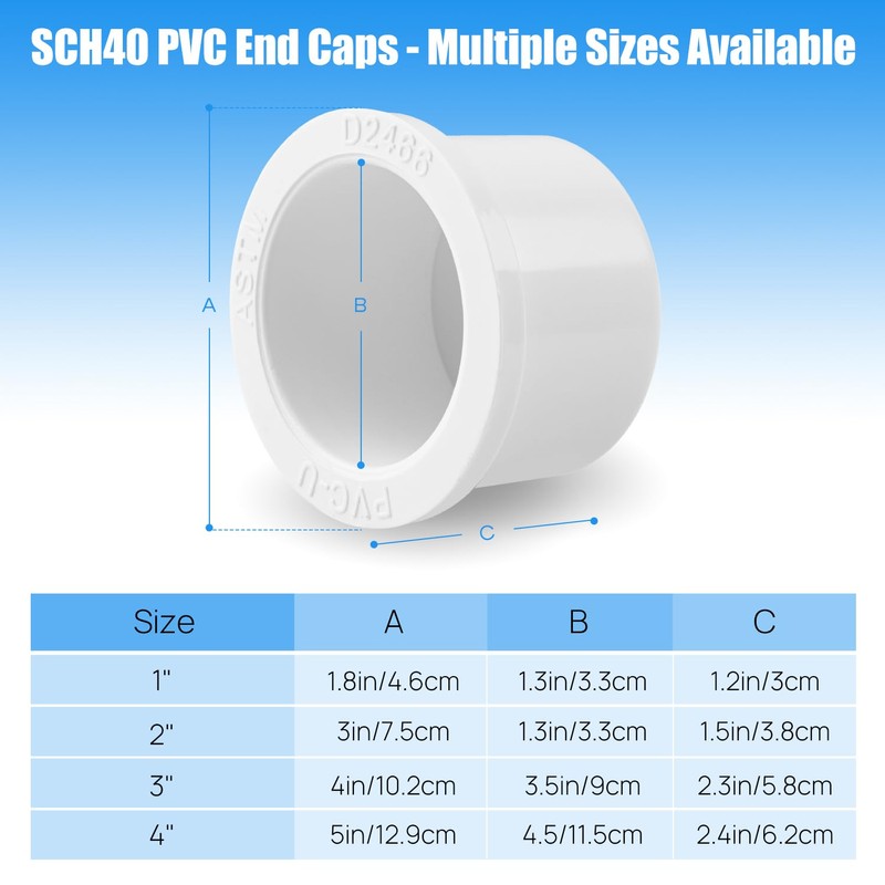 Meet ASTM D2466 standard, these rugged caps deliver an airtight seal to shield pipes from leaks, debris, and corrosion. Perfect for Schedule 40 PVC pipes in plumbing, irrigation, or DIY systems.