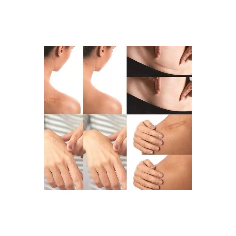 Eficaz en cicatrices recientes o antiguas, incluyendo las causadas por cirugía, cesáreas, quemaduras, acné, cortes, etc.
