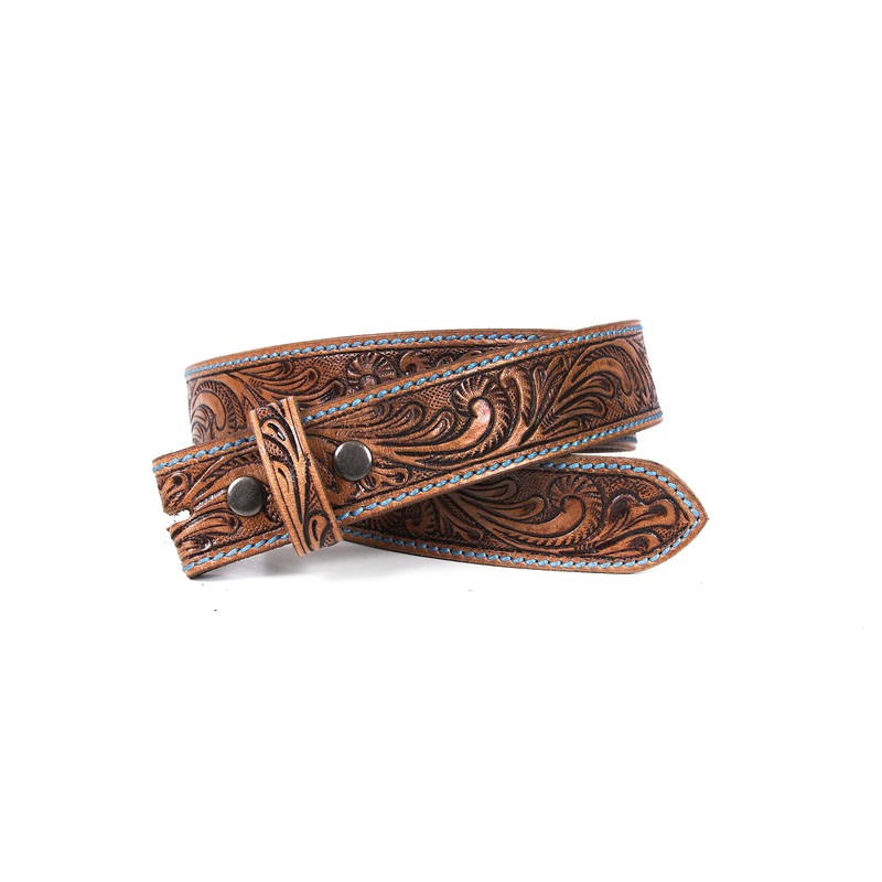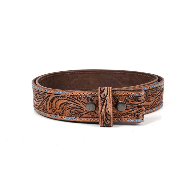Cinturón de cuero para hombre, sin hebilla, correa de cuero con broches, cinturón formal clásico de 38 mm, Azul Occidente, 32