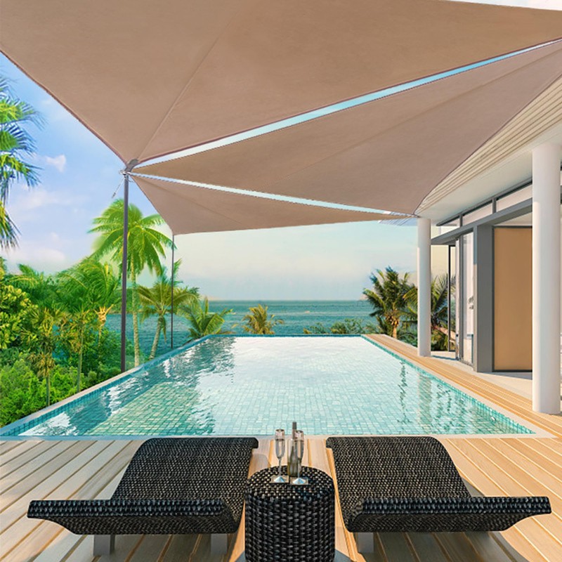 Verwandeln Sie Ihren Wohnraum im Freien mit unserem Triangle Sun Shade Sail – eine wesentliche Lösung, um einen komfortablen, sonnensicheren Hafen zu schaffen.